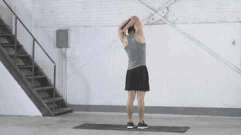 背闊肌和兩側軀干屈肌—主動拉伸—動態側向伸展